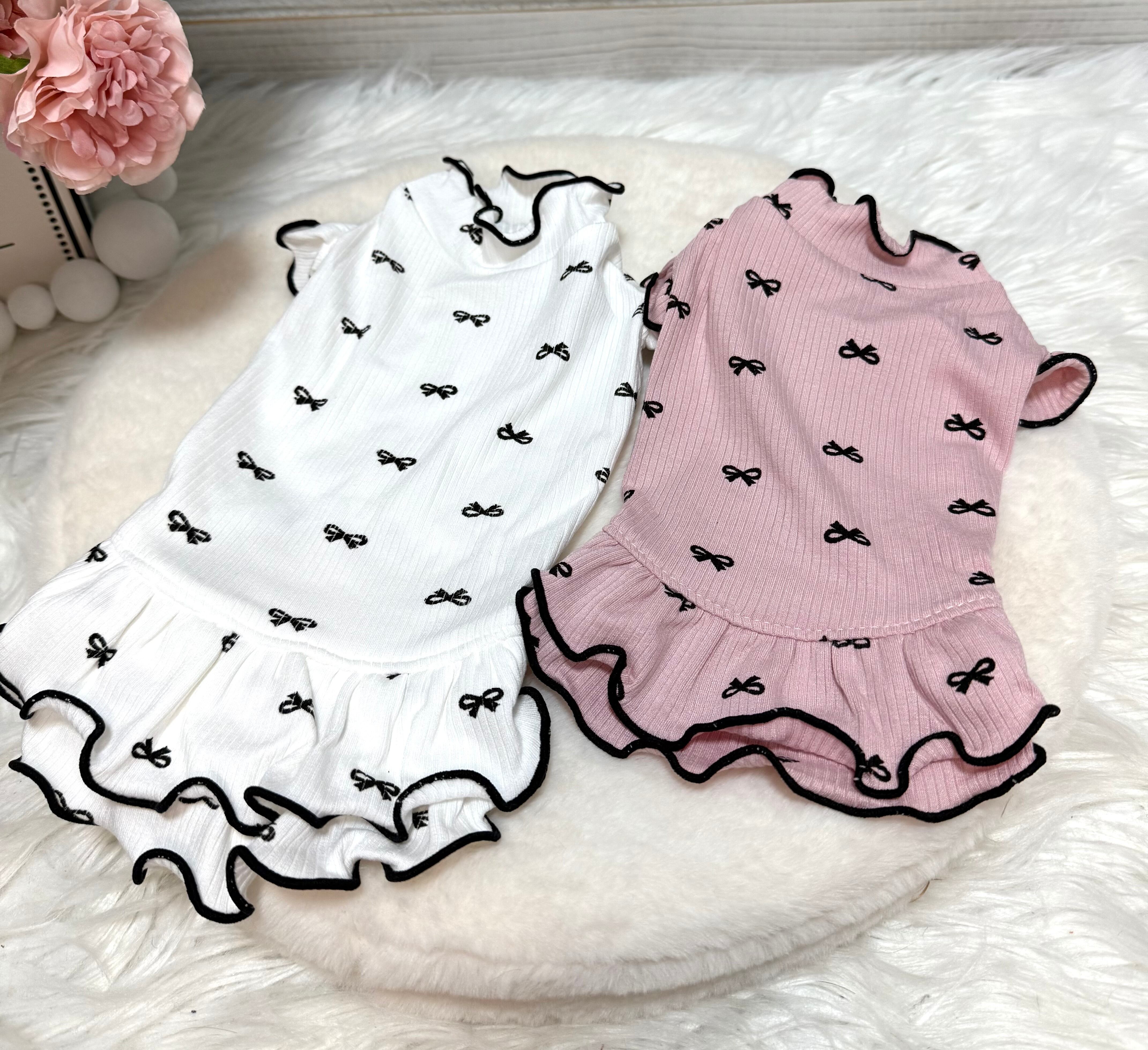 リボン柄リブワンピース【即納分のみ】