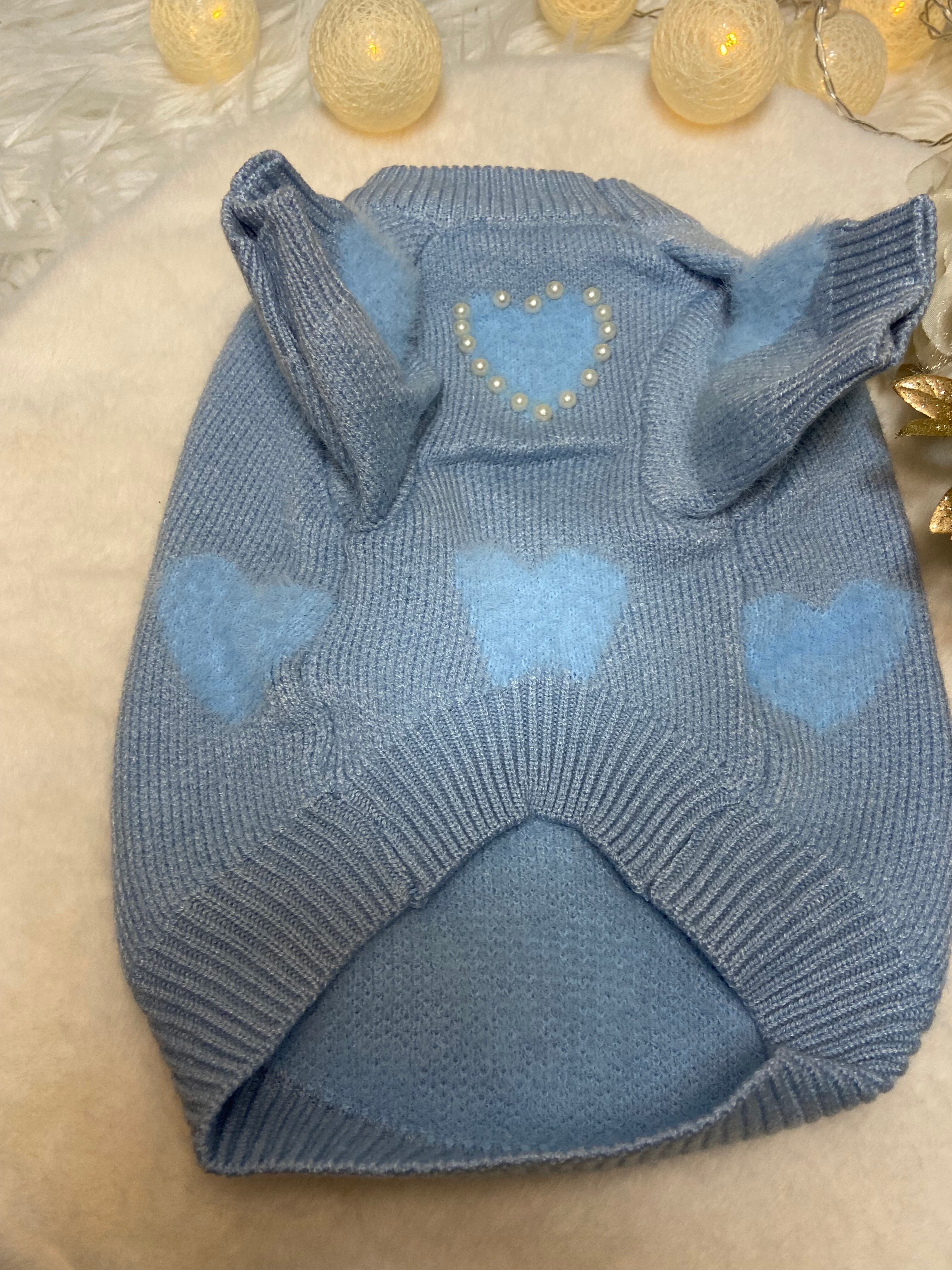 甘くてかわいい水色ハートセーター